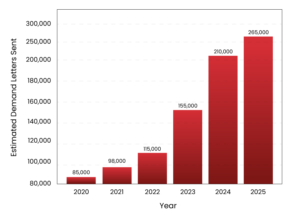 | Year | Estimated Demand Letters Sent (United States) | Primary Cause of Increase |